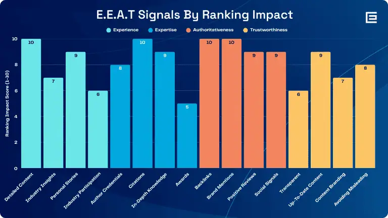 Experience, Expertise, Authoritativeness, and Trust (E-E-A-T) have become central to Google’s evaluation of content quality. These aren’t direct ranking factors but signals that help Google determine the value of your content.